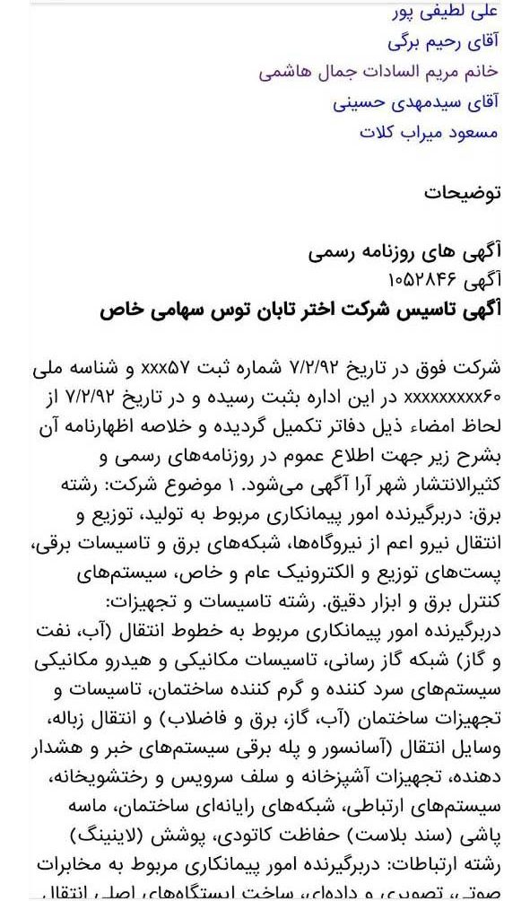 آگهی تاسیس شرکت اختر تابان توس سهامی خاص
