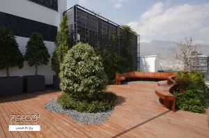 - بام سبز: وجود 1000 متر مربع بام سبز نه تنها به زیبایی ساختمان افزوده، بلکه عایق حرارتی و صوتی طبیعی برای ساختمان ایجاد کرده است.