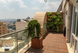تراس سبز چوبینه ترکیبی از دیوار سبز با تکنیک تری و سیستم هیدروپونیک است که به همراه گلدانها، نمایی زیبا و جذاب به ساختمان بخشیده است. در این پروژه، دیوار سبز در تراس خانه با ابعاد 4 مترمربع اجرا شده است. سیستم هیدروپونیک با تکنیک ضیااکو برای کاشت 150 بوته در دیوار سبز استفاده شده است. این طراحی علاوه بر زیبایی، مزایای بسیاری برای محیط خانه دارد.