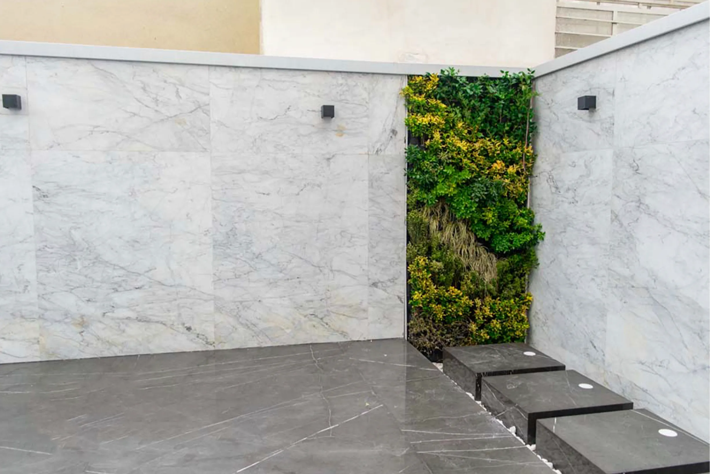 - شرایط محیطی: دیوار سبز باید با شرایط شهری و آلایندههای هوا سازگار میشد. برای این منظور از گیاهان مقاوم به آلودگی و تغییرات جوی استفاده شد.