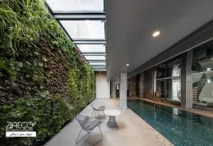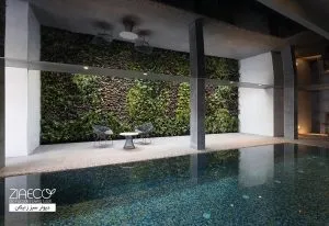پروژه دیوار سبز استخر، دومین تجربه Ziaeco در اجرای دیوار سبز در محوطههای استخری است که پس از پروژه دزیره به اجرا درآمد. با استفاده از تجربیات پروژه دزیره، چالشهای طراحی و اجرای دیوار سبز و کاشت گیاهان متناسب با محیط استخر در این پروژه حل شد.