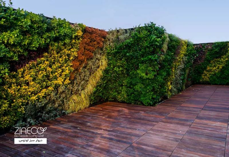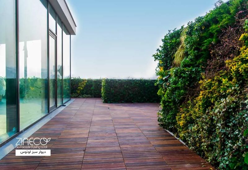 - پروژه دیوار سبز لوتوس-دیوار سبز شادی که در تهران – زعفرانیه اجرا شده است، توسط شرکت سرمایهگذاری و ساختمانی لوتوس سفارش داده و توسط ضیااکو طراحی و اجرا گردید. این پروژه شامل دیوار سبز هیدروپونیک با ابعاد 99 متر مربع برای بخش بیرونی و 14 متر مربع برای فضای داخلی است. هدف این طراحی ایجاد یک محیط اداری با فضای سبز زیبا و بهبود کیفیت هوا و تجربه کاربری برای کارکنان و مشتریان است.