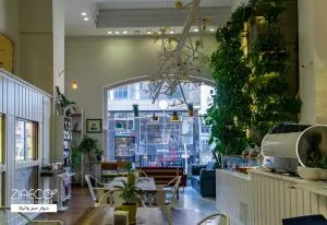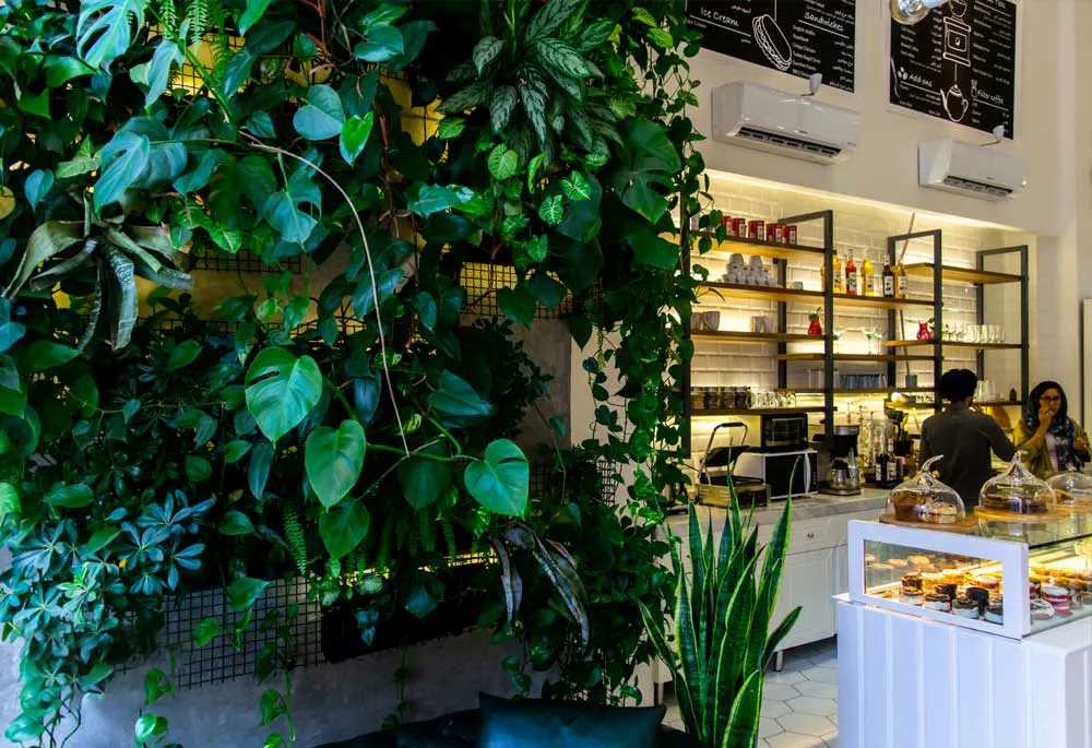 - فضای سبز پایدار: گیاهان این دیوار سبز بهطور خاص برای محیط کافه انتخاب شدهاند، بهطوریکه فضای سبز زنده و شادابی را در محیط کافه به ارمغان میآورند.
