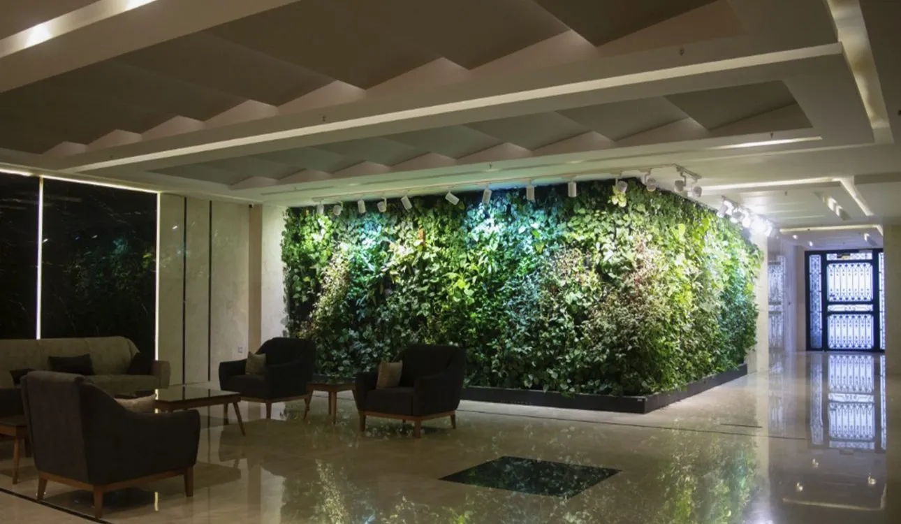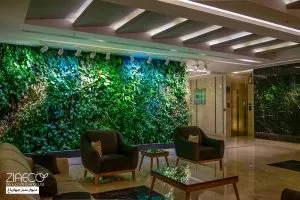 در این پروژه از سیستم دیوار سبز هیدروپونیک برای ایجاد یک فضای سبز و طبیعی در لابی ساختمان استفاده شده است. سیستم هیدروپونیک به گیاهان این امکان را میدهد که بدون خاک و تنها با استفاده از محلولهای مغذی در آب رشد کنند. علاوه بر این، استفاده از نورپردازی در طراحی این دیوار سبز باعث شده است تا زیبایی گیاهان در شب نیز به نمایش گذاشته شود و فضای لابی بهطور خاص و جذابتر شود.