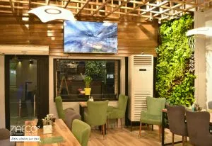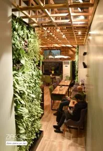 فضای راحت و دلنشین: فضای سبز ایجاد شده در کافه، به مشتریان اجازه میدهد تا از نشستن در محیطی آرام و طبیعی لذت ببرند.