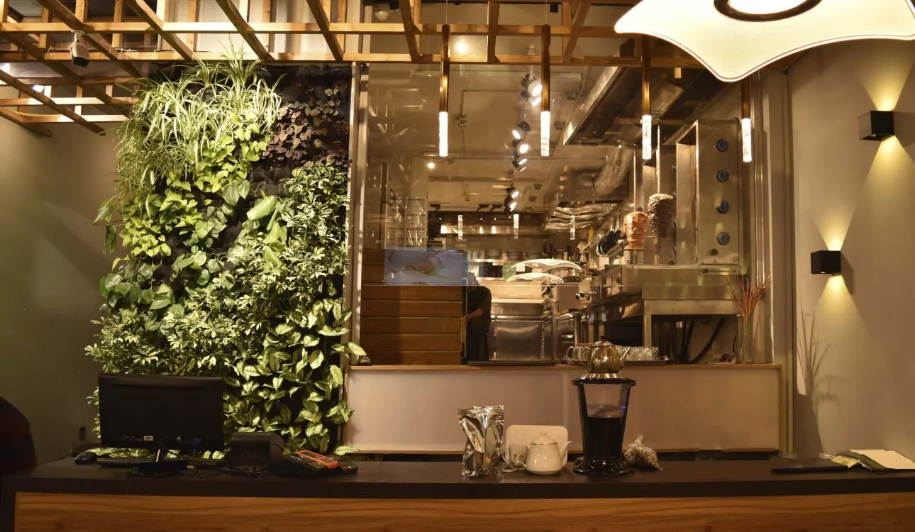 پروژه دیوار سبز رستوران یخچال با طراحی سیستم هیدروپونیک به منظور افزودن زیبایی و طراوت به فضای داخلی کافه و رستوران اجرا شد. این دیوار سبز علاوه بر زیبایی بصری، به بهبود کیفیت هوای داخل محیط و ایجاد فضایی آرام و دلنشین برای مشتریان کمک کرده است. طراحی این فضا برای پذیرش تعداد زیادی مشتری در محیطی شاداب و طبیعی است.