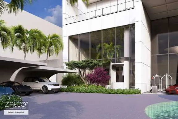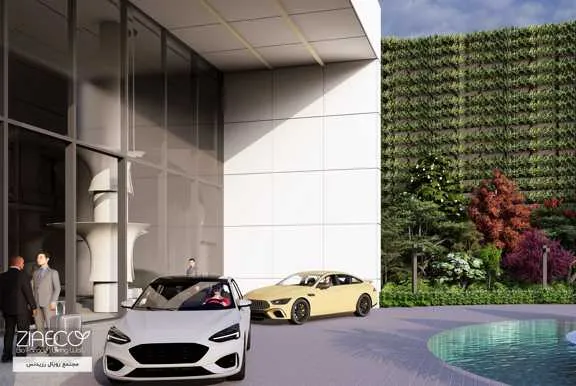 در ورودی این مجتمع مسکونی، هدف ایجاد فضایی دعوتکننده و چشمنواز برای عابران بود. با طراحی میدانی از آب و شیشه در کنار دیوار سبز و مجموعهای از درختان و گیاهان متنوع، ورودی به فضایی پویا و جذاب تبدیل شد که حس طراوت و شکوه را از همان ابتدا القا میکند.
