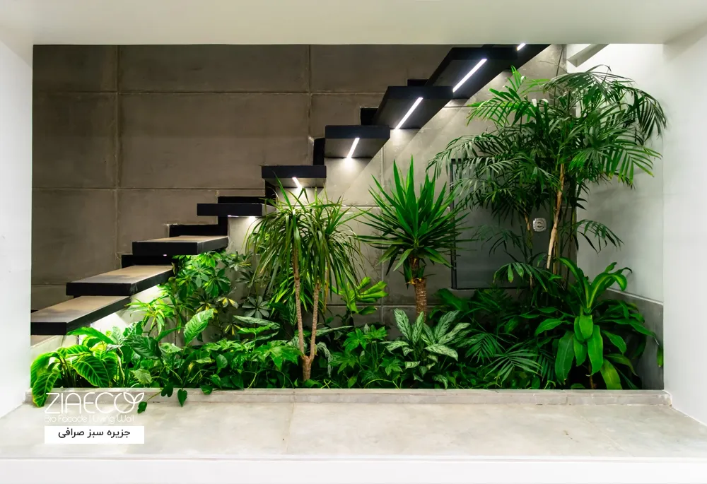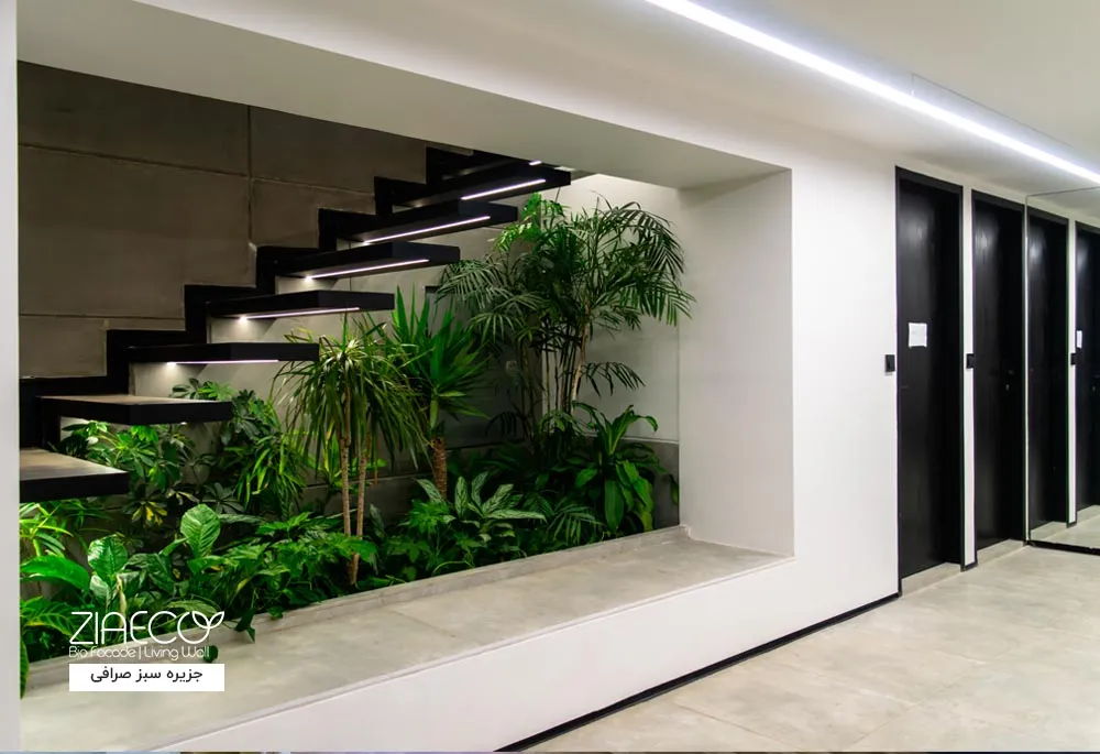 • طراحی چند‌بعدی: استفاده از سیستم دیوار سبز هیدروپونیک به همراه جزیره سبز و فلاورباکس در این پروژه باعث شده که فضای سبز در چندین نقطه از محیط صرافی توزیع شود، که هم باعث ایجاد تنوع بصری و هم تهویه بهتر در فضای داخلی می‌شود.