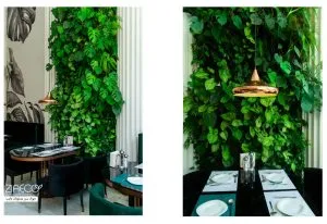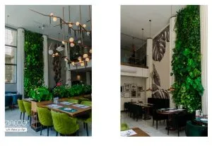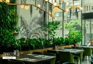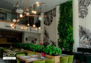 - طراحی منحصر به فرد: استفاده از سیستمهای دیوار سبز هیدروپونیک و فلاورباکس در فضای تجاری به فضای رستوران و کافه شادابی و تازگی میبخشد. این ترکیب با نورپردازی مناسب و گیاهان با طراحی خاص، به فضایی جذاب و آرامشبخش تبدیل شده است.