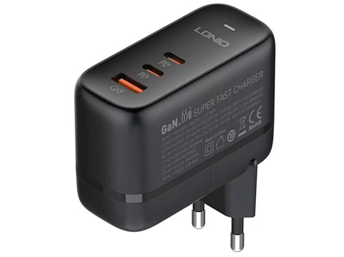 شارژر LDNIO مدل Q366 از با کیفیت ترین شارژرهای بازار است که دارای سه سری مختلف می باشد. این محصول دارای دو درگاه تایپ سی 65 وات و یک درگاه یو اس بی 30 وات است و قادر است همزمان انواع گوشی موبایل یا تبلت شما را شارژ کند. پشتیبانی از تمامی پروتکل های شارژ سریع،فناوری GaN و سه سری ایالات متحده، اتحادیه اروپا(ایران) و انگلستان به همراه کابل شارژ مرغوب Type-c از امکانات این شارژر می باشد.