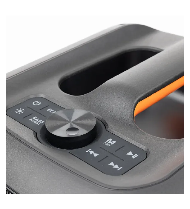 یکی از ویژگی‌های برجسته این اسپیکر، نورپردازی LED جذاب آن است که در کنار پخش موسیقی، جلوه‌های نوری رنگارنگی را به فضای جشن و مهمانی شما می‌افزاید. این ویژگی به‌ویژه در فضاهای باز و شبانه جلوه‌ی زیبایی دارد و می‌تواند فضایی پویا و پرانرژی را ایجاد کند.
