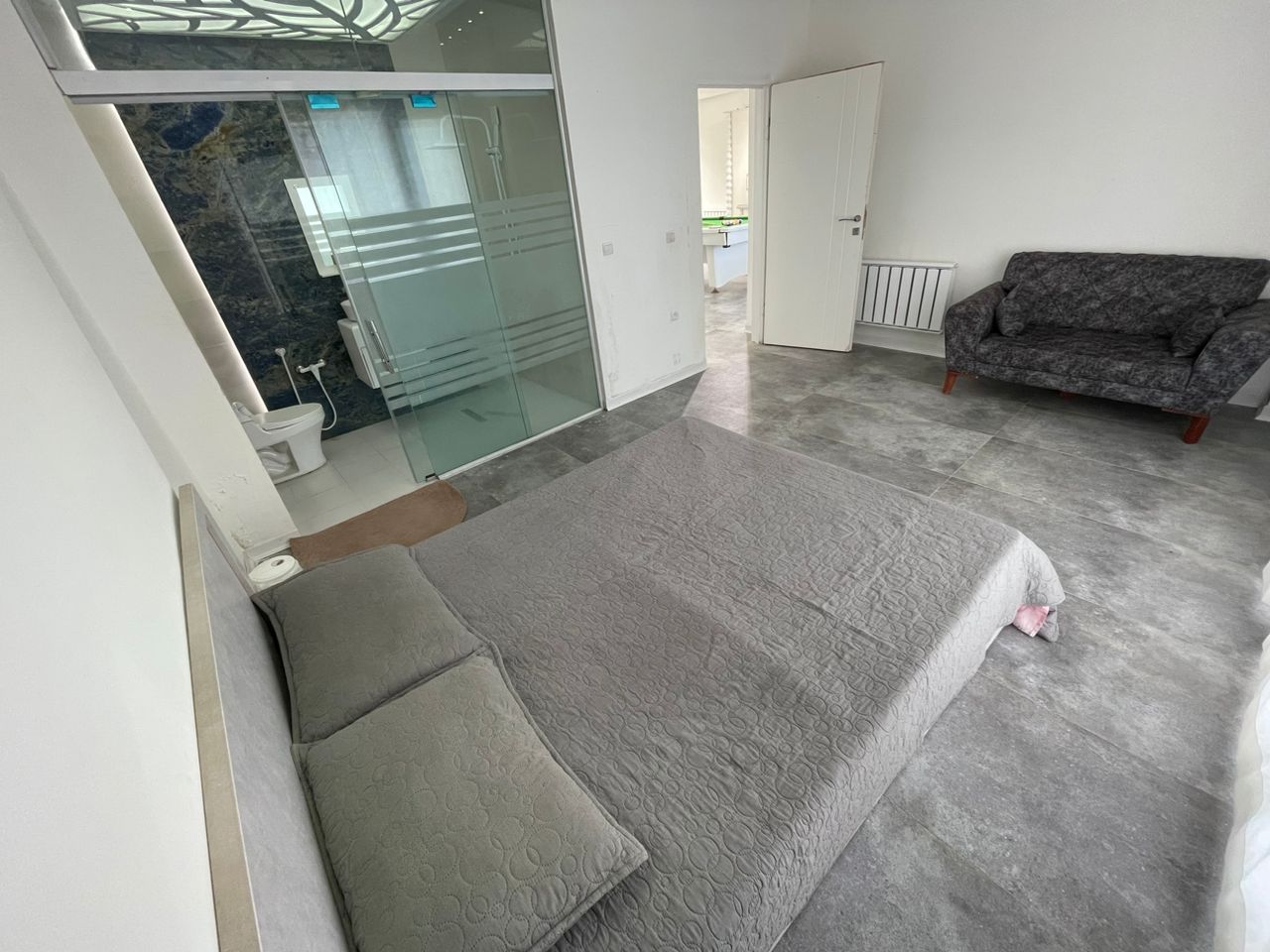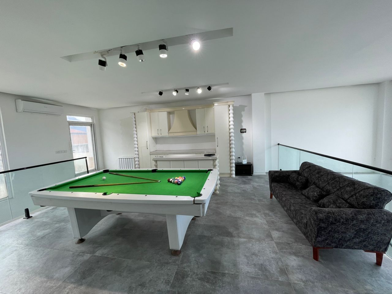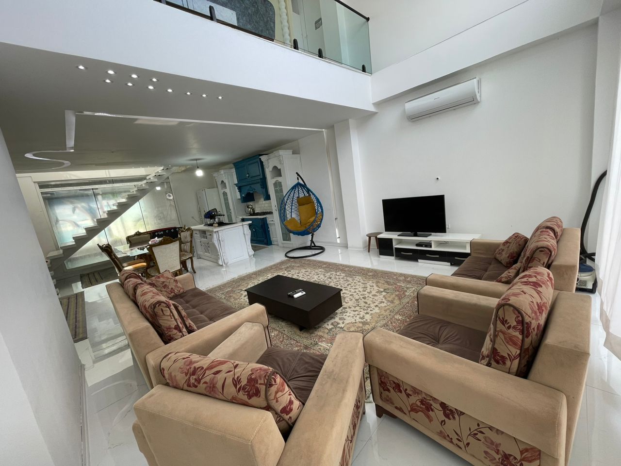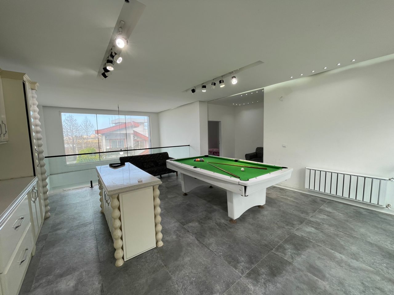 ✅طبقه اول : نشیمن بسیار زیبا آشپزخانه میز نهار خوری یک اتاق و یک سرویس ایرانی و فرنگی و استخر سر بسته و میز فوتبال دستی